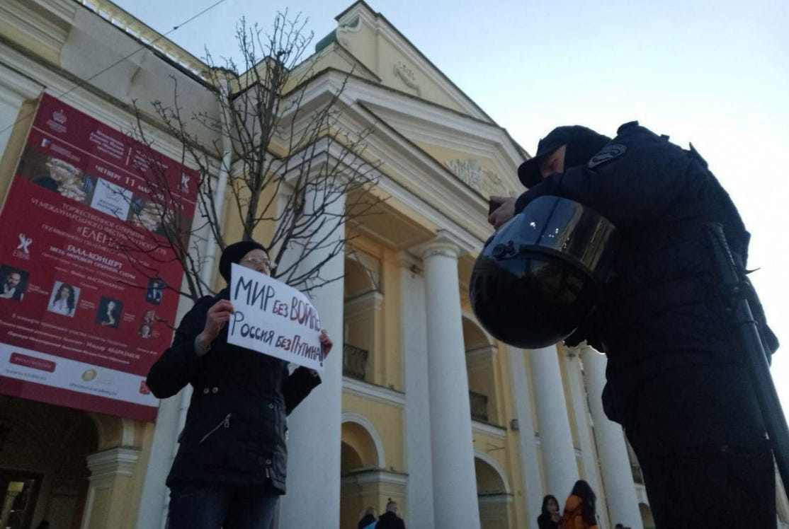 Уявіть: поки російська влада карає за найменший натяк на мир, як у випадку з активісткою Оленою Абрамовою, засудженою до колонії за антивоєнні пікети,
